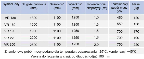 W zamówieniu należy podać symbol witryny z określonego okienka tabeli, z    wyraźnym zaznaczeniem jej głębokości oraz koloru elementów    dekoracyjno-wykończeniowych: np. VR 130, czerwona.
