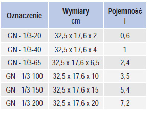 Przy zamówieniu podać oznaczenie pojemnika wg symbolu "Dostępne opcje", np. GN 1/3-65