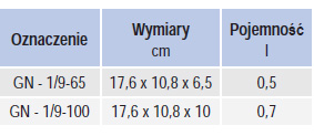 Przy zamówieniu podać oznaczenie pojemnika wg symbolu "Dostępne opcje", np. GN 1/9-65