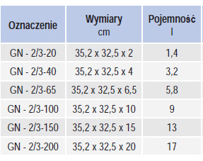 Przy zamówieniu podać oznaczenie pojemnika wg symbolu "Dostępne opcje", np. GN 2/3-65