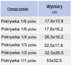 Przy zamówieniu podać oznaczenie pokrywki wg symbolu "Dostępne opcje", np. Pokrywka 1/9 poliw.