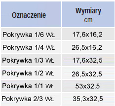Przy zamówieniu podać oznaczenie pokrywki wg symbolu "Dostępne opcje", np. Pokrywka 1/6 WŁ.