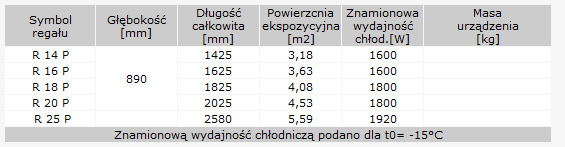 W zamówieniu należy podać symbol regału z określonego okienka tabeli, z wyraźnym zaznaczeniem jej głębokości: np. R-14 P