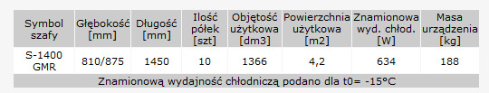 W zamówieniu należy podać symbol szafy z określonego okienka tabeli, z wyraźnym zaznaczeniem jej głębokości: np. S-1400 GMR.