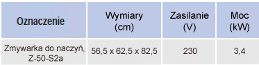W zamówieniu należy podać symbol zmywarki zgodnie z symbolem z "Dostępne opcje", np.: Z-50-S2a.